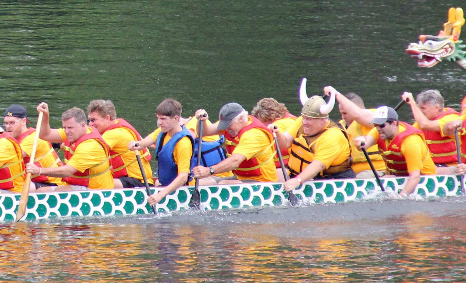 I would think if these were really dragon races, they'd be draggin' those boats instead of trying to row them. Boy, talk about making things more difficult than they need to be!