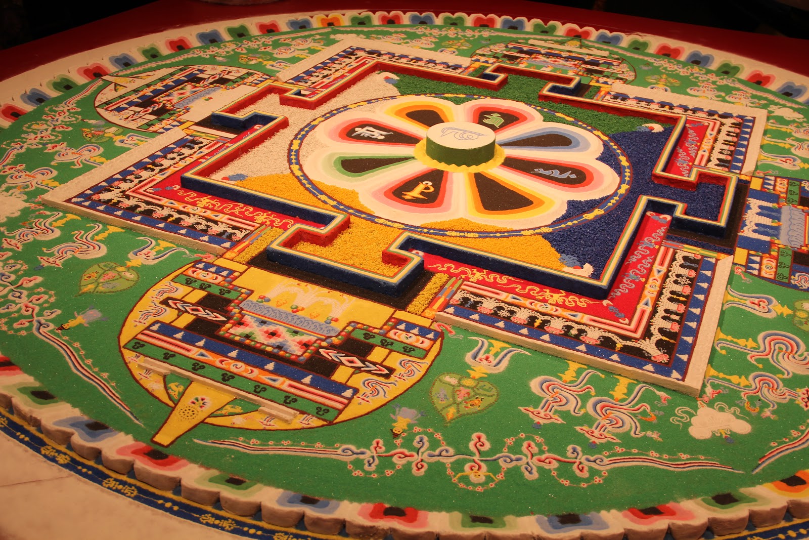 Many viewers wanted to see the finished mandala. This is the almost finished mandala yesterday, before it is dismantled tomorrow.
